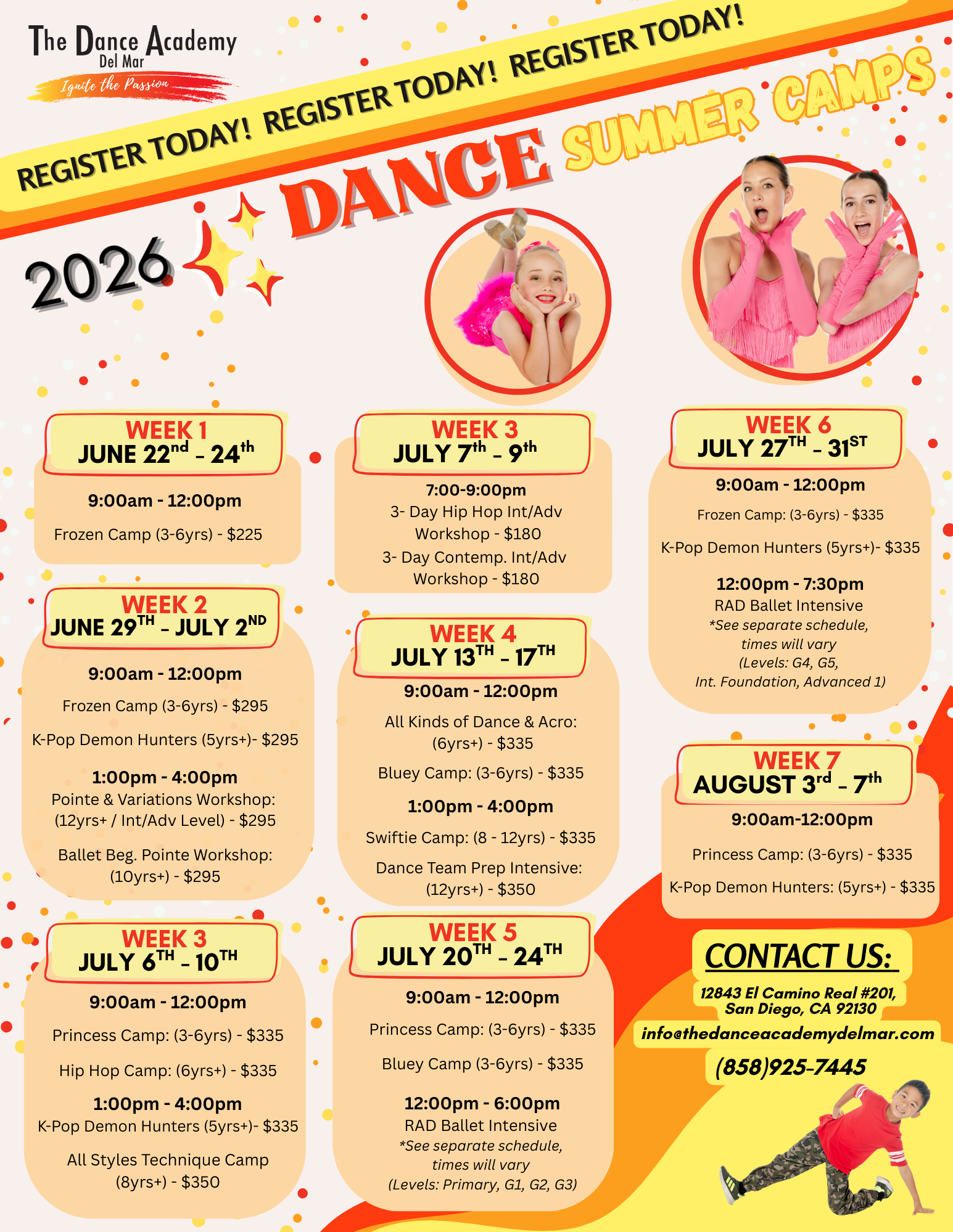 Our summer camps at The Dance Academy Del Mar are renowned for being more than just a camp. Our dancers don’t want to leave at the end because they have so much fun.